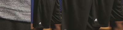 - "R" Russell logo on lower right leg
