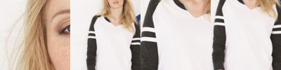 - Contrast-color, topstitched self-fabric sleeve stripes
