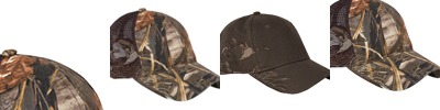 100% cotton, brushed chino twill; Camo - 60% cotton/40% polyester; Structured front; Pre-curved visor; Hook and loop backstrap; Detailed embroidered wildlife scene on right side; DRI DUCK embossed leather patch left of back vent; Imported;