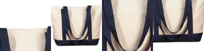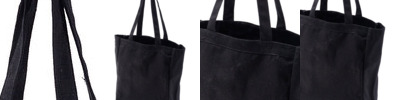 100% cotton canvas; Self-fabric handles; 10.25"W x 13.5"H x 5"D;