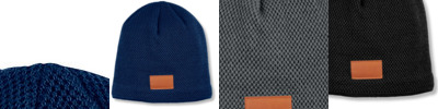 - Textured acrylic knit beanie with PU patch