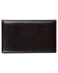 - Holds ID/business card behind clear PVC viewing window on back panel hidden by leather flap