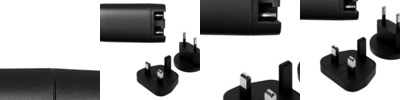- Universal charger includes US/CA, EU, UK adapters