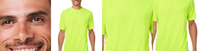 3.5 oz./yd² (US), 5.8 oz./L yd (CA), 100% polyester interlock Cationic dyes to ensure superior brightness and excellent color fastness Moisture-management properties UPF 40+ protection Team fit Transitioning from heat-seal label to tear away label. Inventory may be mixed