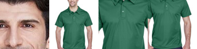 4.5 oz./yd² (US), 7.5 oz./L yd (CA), 100% polyester snag protection piqué Moisture-management properties UPF 15-39 protection Anti-microbial properties Self-fabric collar and integrated collar stays Three-button placket Tear away label