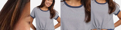- Double-needle topstitched neckline