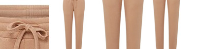 • Ribbed-knit waistband with external round drawcord and silicone tips