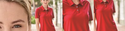 Sun protection rises to a new level in 50+ UPF moisture-wicking polyester.